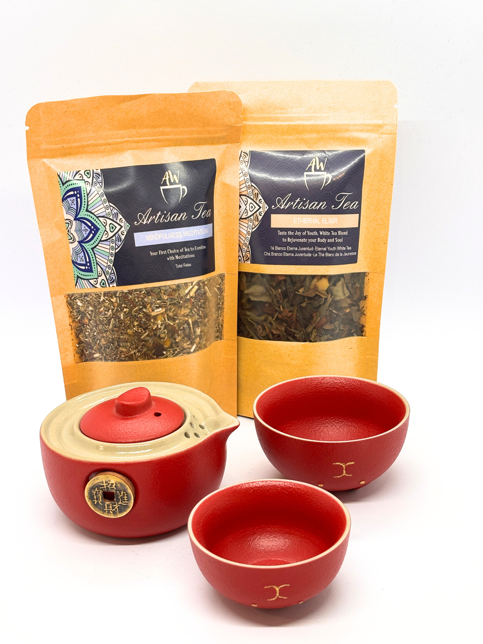 Obsah balenia: čajník, dve šálky, prenosný obal, dva sypané čaje