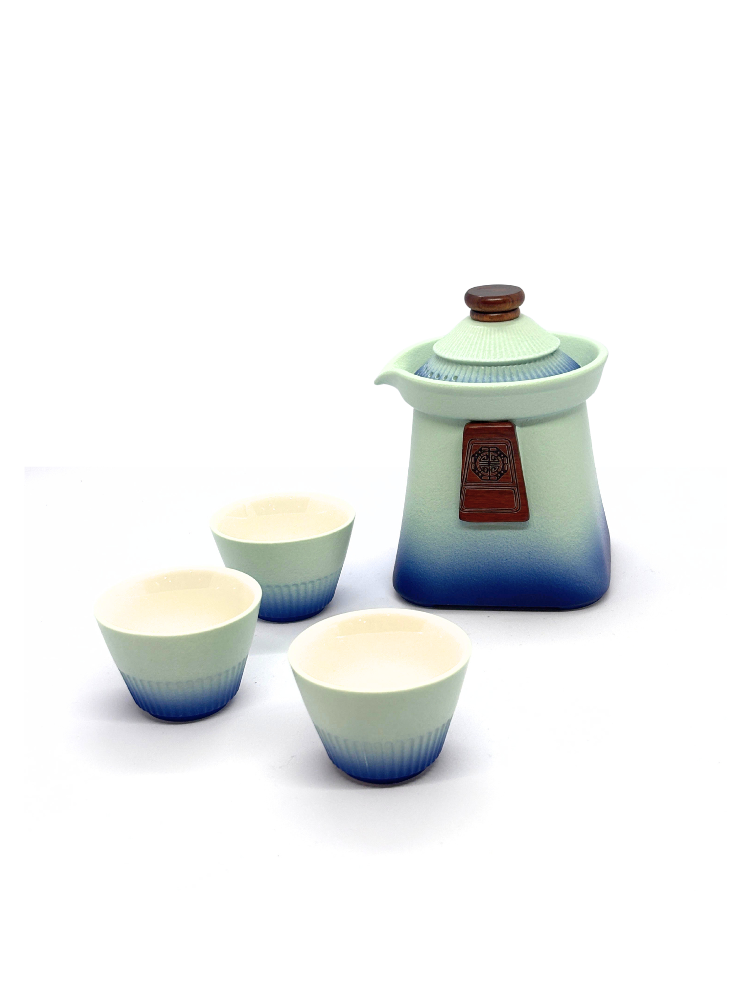 Obsahuje čajník a tri šálky v harmonických odtieňoch zelenej a modrej. Vyrobená z kvalitnej keramiky s jemnou textúrou.