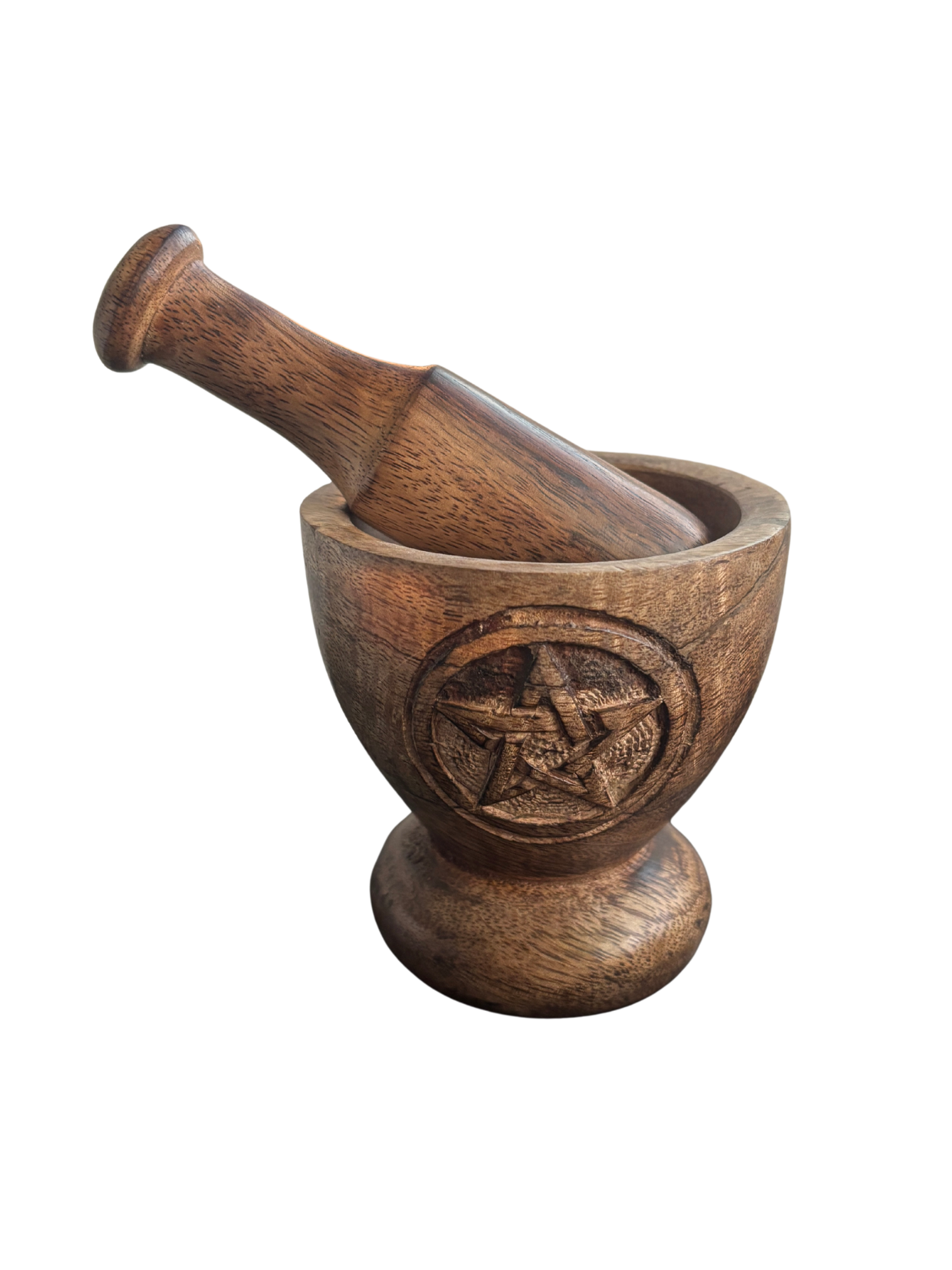 Mažiar určený pre praktiky prírodnej mágie a čarodejníctva, na prebúdzanie sily prírodných elementov a energie bylín a na výrobu magických práškov, zmesí a kašičiek.