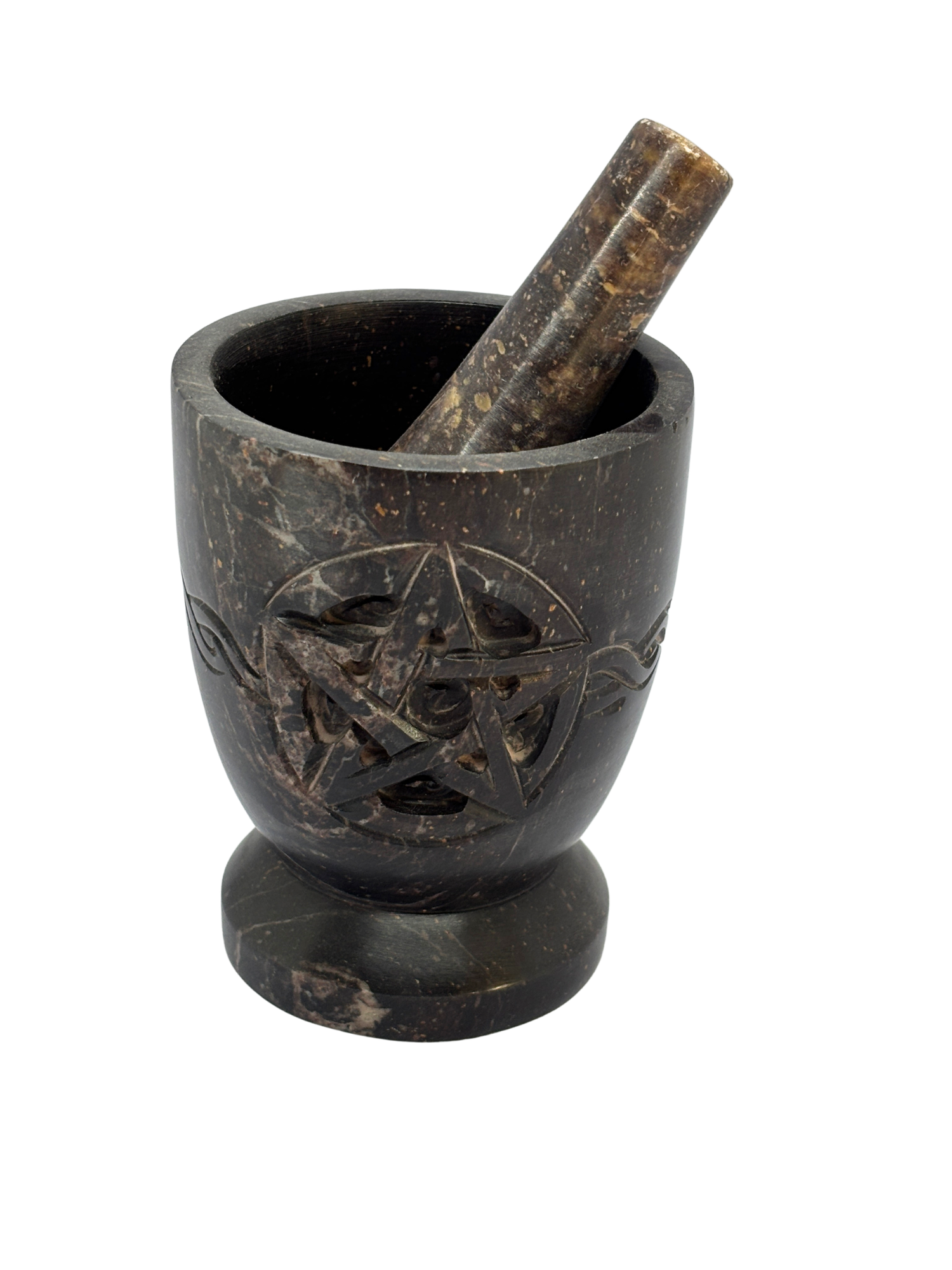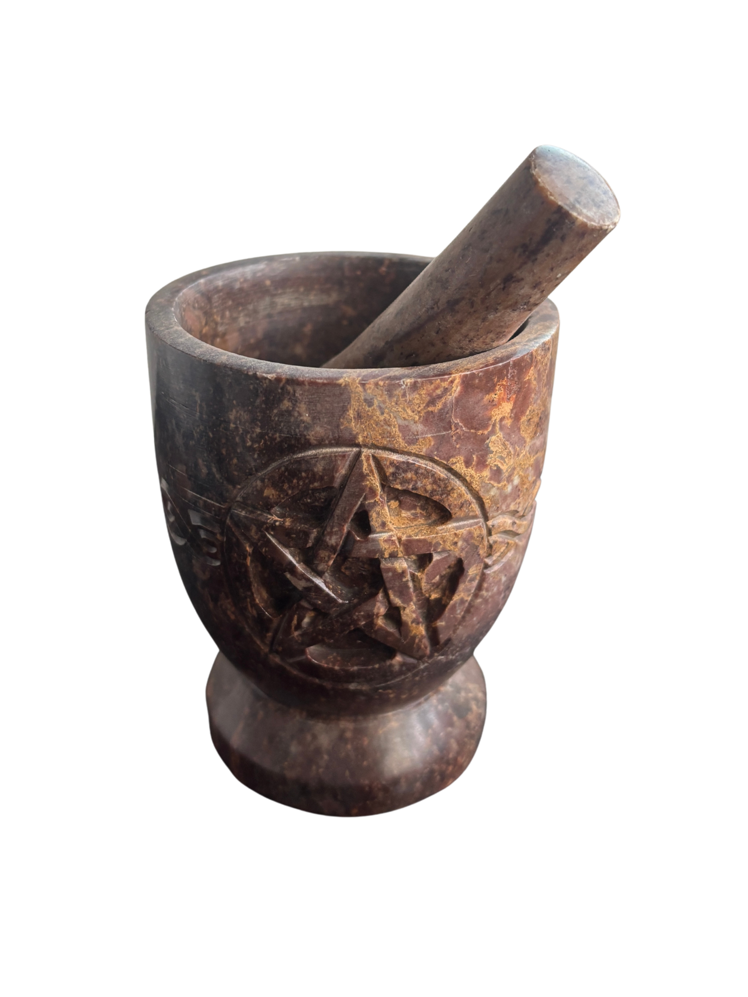 Mažiar určený pre praktiky prírodnej mágie a čarodejníctva, na prebúdzanie sily prírodných elementov a energie bylín a na výrobu magických práškov, zmesí a kašičiek.