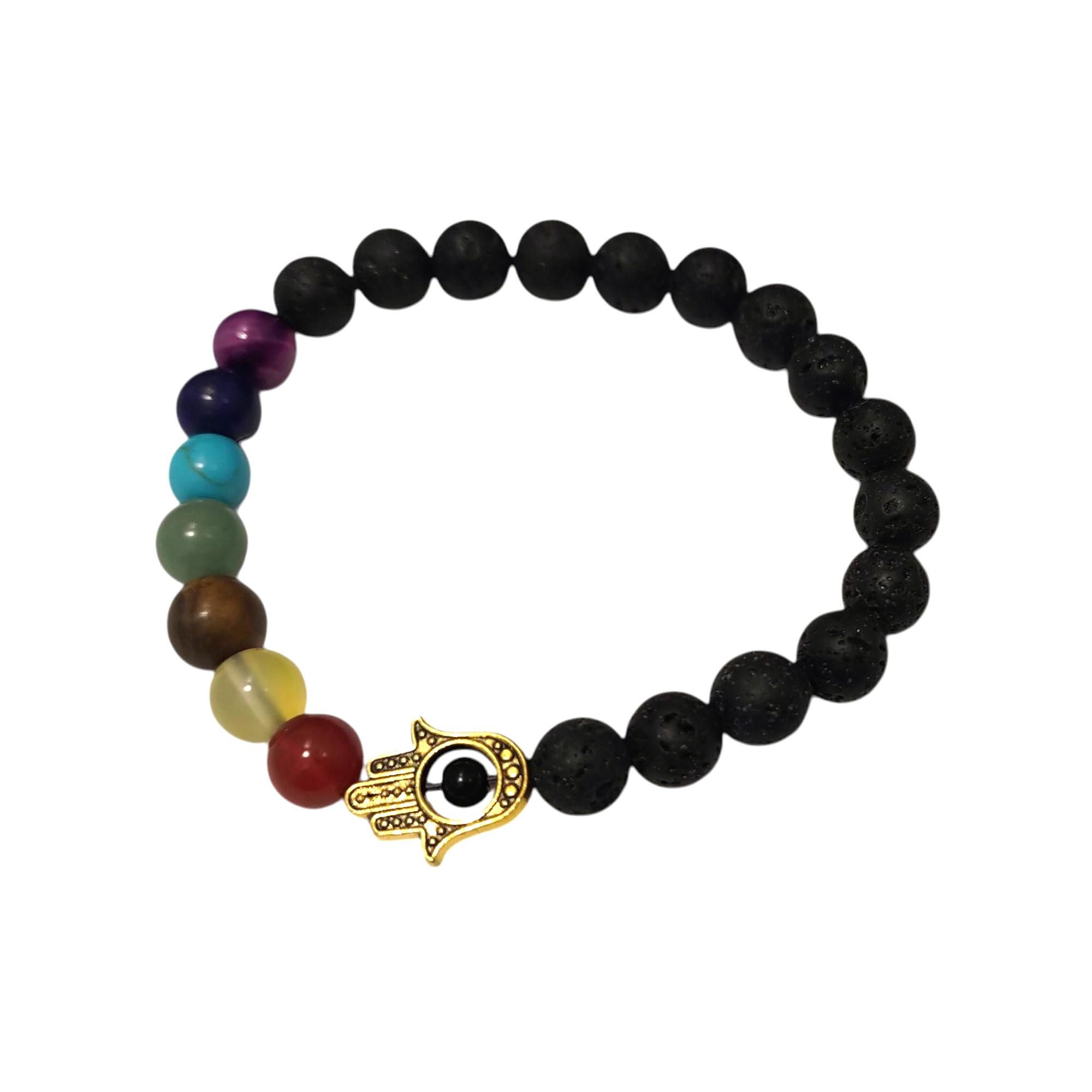 Náramok z lávových kameňov so symbolom ochrannej ruky Bohyne.