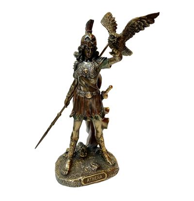 Aténa, bohyňa múdrosti, so sovou a oštepom.